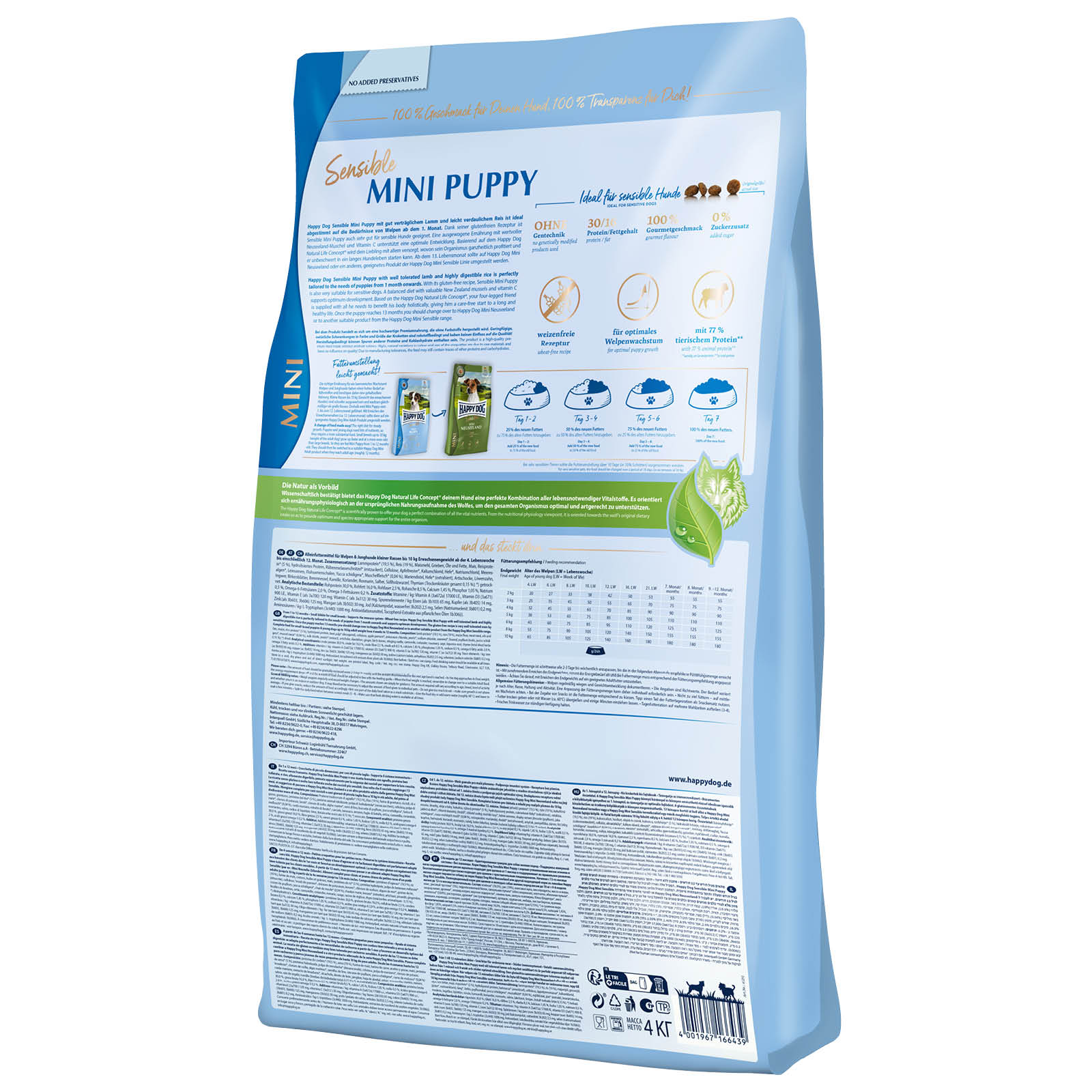 İdeal olarak, küçük köpeğinizi ayın 4'ünden itibaren Happy Dog Sensible Mini Puppy ile beslemelisiniz. 12'sine kadar ve dahil olmak üzere yaşam haftası Yaşam ayı. 10 kg'a kadar küçük köpek ırkları (yetişkin köpeğin ağırlığı) büyük ırklara göre daha hızlıdır ve daha eşit büyür. Bu nedenle Mini Puppy ürünlerimiz özellikle küçük cins yavru köpekler ve genç köpekler için mevcuttur. 13'ünden itibaren yaşam ayı, yavaş yavaş mini bir yetişkin yemeğine geçebilirsiniz. Sensible Mini Puppy'nin ardından Happy Dog Sensible Mini Yeni Zelanda'mızıöneriyoruz.