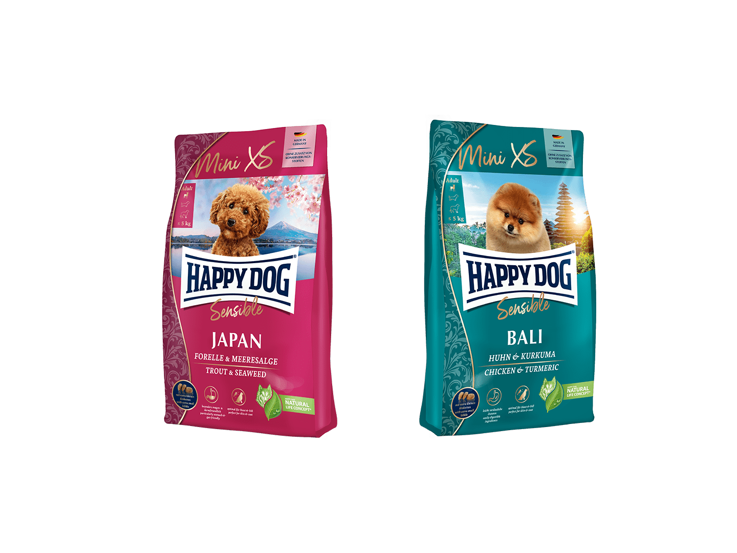 Happy Dog Mini xs serisi, küçük ırk köpekler için özel olarak tasarlanmış üst düzey bir köpek maması serisidir.